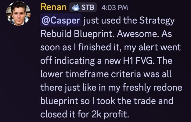 "Just Used The Strategy Rebuild Blueprint. Awesome... Took The Trade And Closed It For $2k Profit."